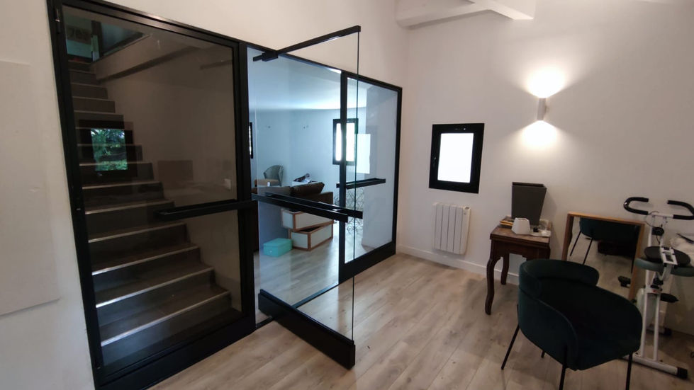 Cloison vitrée en acier.